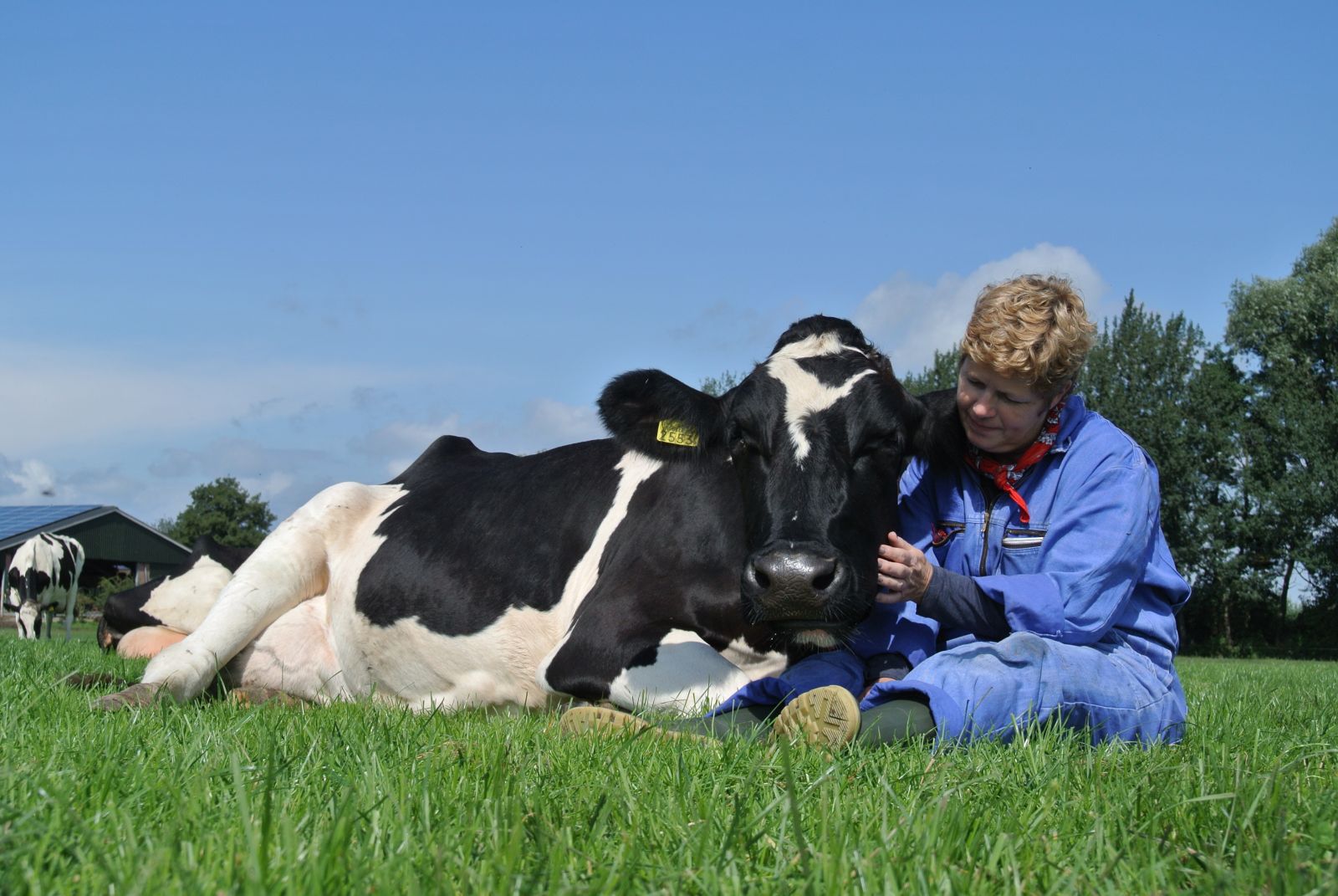 Ik kan het iedereen aanraden, het is een bijzondere ervaring. En als je dan toch aan het koeknuffelen bent, bekijk die mooie koe dan eens heel goed van dichtbij. Zie je die mooie lange wimpers, en het bobbeltjespatroon in de neus? En heb je al eens gevoeld hoe zacht die behaarde bovenlippen zijn? Iedere koe heeft een eigen karakter en dat zien je ook terug, bijvoorbeeld in de oogopslag en de houding. En hoe geweldig is het niet om samen met de koe over het landschap uit te kijken en precies hetzelfde te zien als zij.